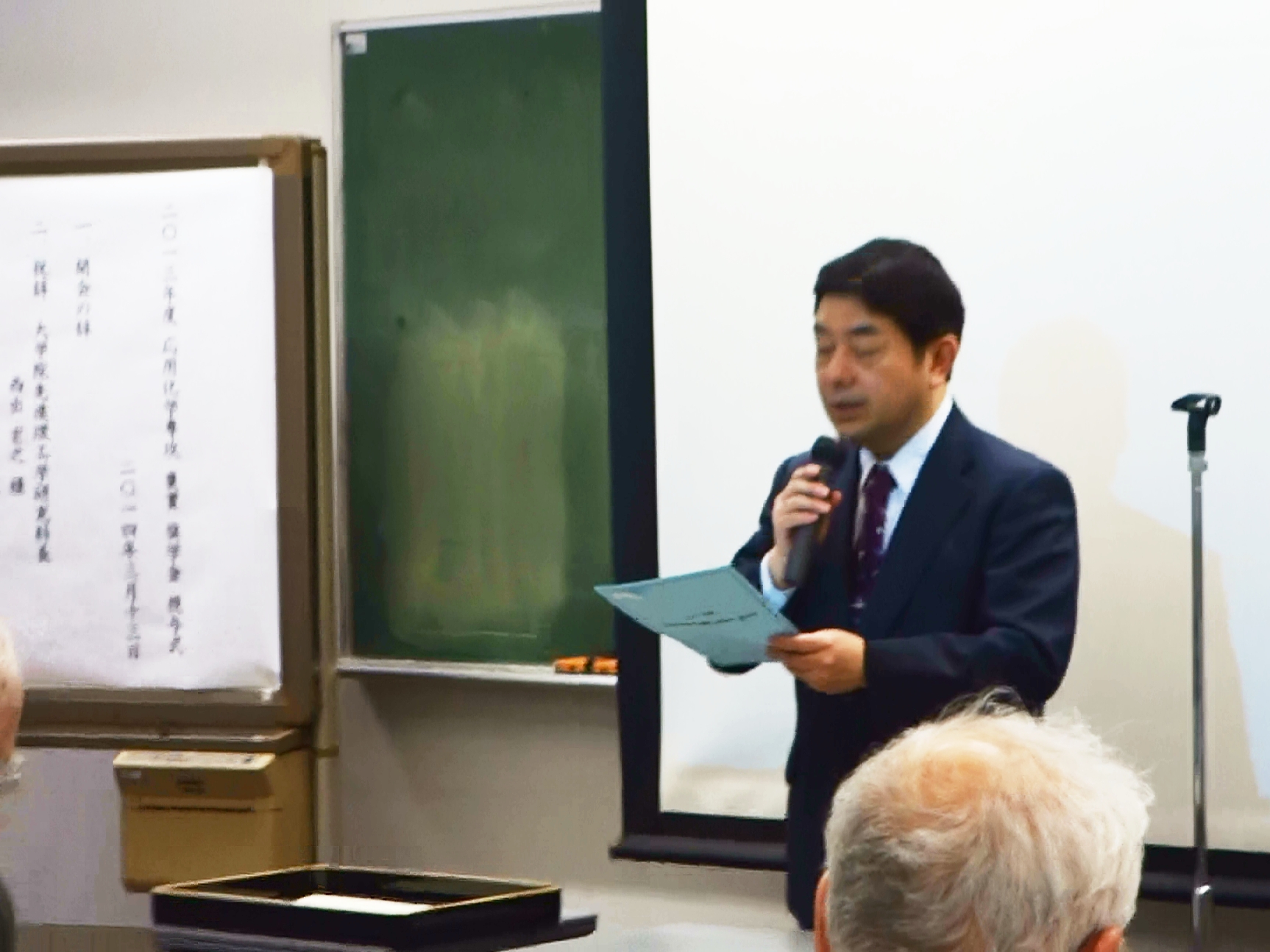 「本日は、応用化学専攻褒賞奨学金授与式の開会にあたりまして祝辞を述べさせていただきます。