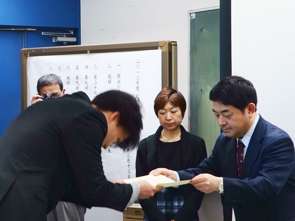 水野賞は、校友であられた水野敏行氏が早稲田大学の発展に心を砕かれ、後輩である私共、応用化学専攻の早大生のために創られた賞と存じております。この程、私共は、この名誉ある水野賞を賜り、受賞者一同、喜びと共に身の引き締まる思いで一杯です。本年度博士号を授与される私共は、学生生活を終えて新年度より社会に旅立つことになります。今後は各々の立場や専門は違えど、応用化学専攻を修了した者に共通の『役立つ化学、役立てる化学』を大切にして、科学技術の発展と普及に貢献していく所存です。今後ともご指導、ご鞭撻のほど何卒宜しくお願い申し上げます。